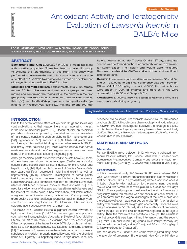 Antioxidant Activity and Teratogenicity Evaluation PDF Polyphenol